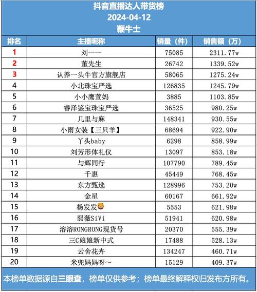 抖音带货若达到1000万元销售额,其收入高低将受制于具体的销售手段和途径。若带货视频收获1000万个赞,大致可以促成5万笔交易,每笔交易赚取15元利润,如此一来,带货的盈利便可达75万元。若直播间收获千万点赞,其预估播放量亦在千万左右,此可助力粉丝数增加约二十万,加之作品仍受热捧,直播可连续数晚进行,预计音浪可达百万,其中直播间收入占比约半抖推宝,即百万音浪对应五十万元。概而言之,抖音带货若达到千万级别,收益颇丰,然而实际收入尚需视带货手段及销售途径而定。