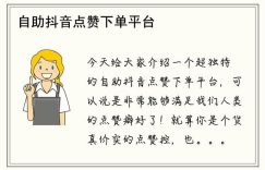 在当今数字化浪潮席卷全球的背景下,社交媒体平台已成为品牌推广与用户互动的重要阵地,抖音作为短视频领域的佼佼者,凭借其庞大的用户基数和高度活跃的社区氛围,吸引了无数企业和个人创作者的目光,一个新兴的“抖音赞自助下单平台网站”悄然兴起,为市场带来了全新的数字化营销解决方案,引发了行业内的广泛关注。